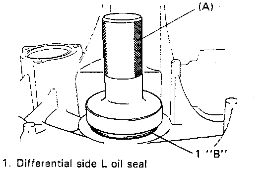 2. Install differential side L oil seal until it becomes flush with case surface by using special tool with hammer, and then apply grease to its lip.