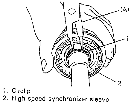 CAUTION: Be careful not to pinch synchronizer ring spring when removing.