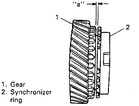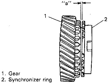 2. If synchronizer parts need to be repaired, check clearance "a" between ring and gear, each chamfered tooth of gear, ring and sleeve, then determine parts replacement.