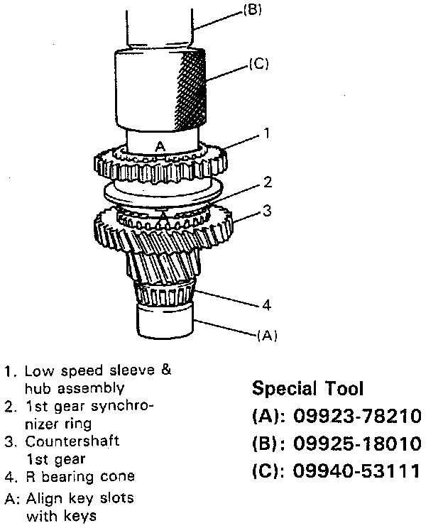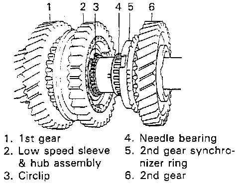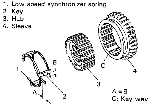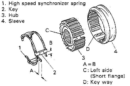 ^ Size of high speed synchronizer sleeve, hub, keys and springs is between those of low speed and 5th speed ones.