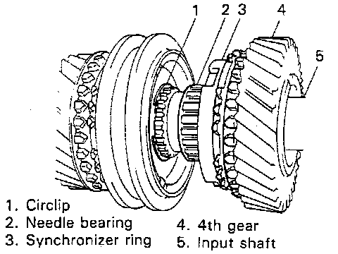 3. Take out 4th gear needle bearing and high speed synchronizer ring.