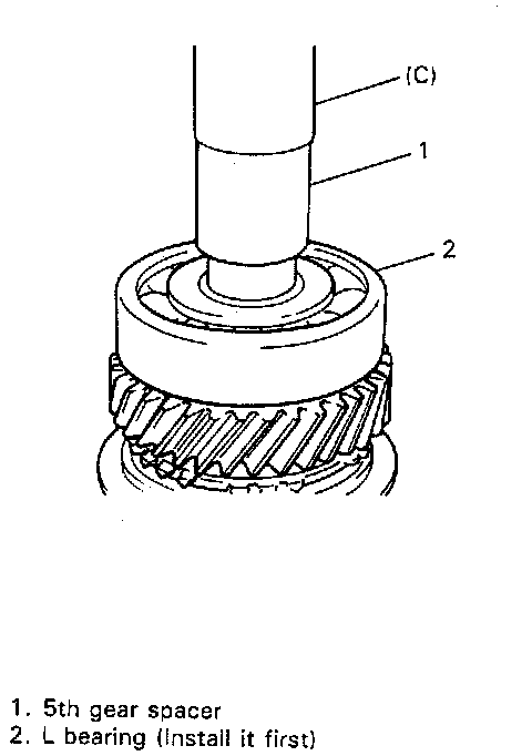 CAUTION: To prevent 5th gear spacer from being distorted because of excessive compression, do not press-fit it with L bearing at once.