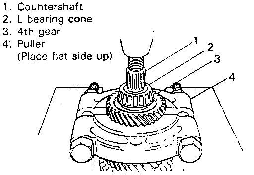 1. Drive out L bearing cone with 4th gear by using puller and press.