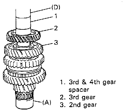 NOTE: It is recommended to press-fit spacer and 3rd gear first, and then 4th gear later separately so that countershaft will not be compressed excessively.