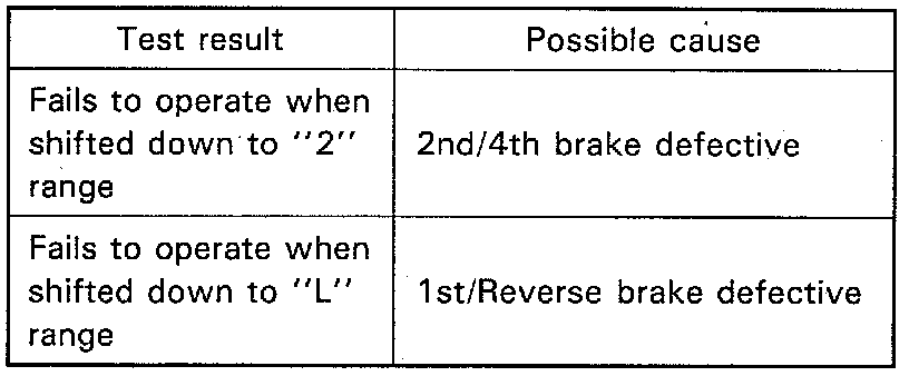 2. In the same way as in Step 1), check engine brake for operation when select lever is shifted down to "L" range.