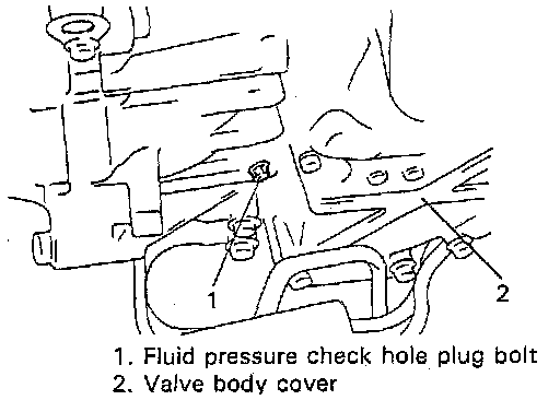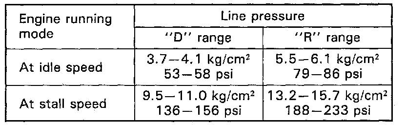 5. Depress foot brake fully, run engine at idle and stall and then check fluid pressure in "D" or "R" range.