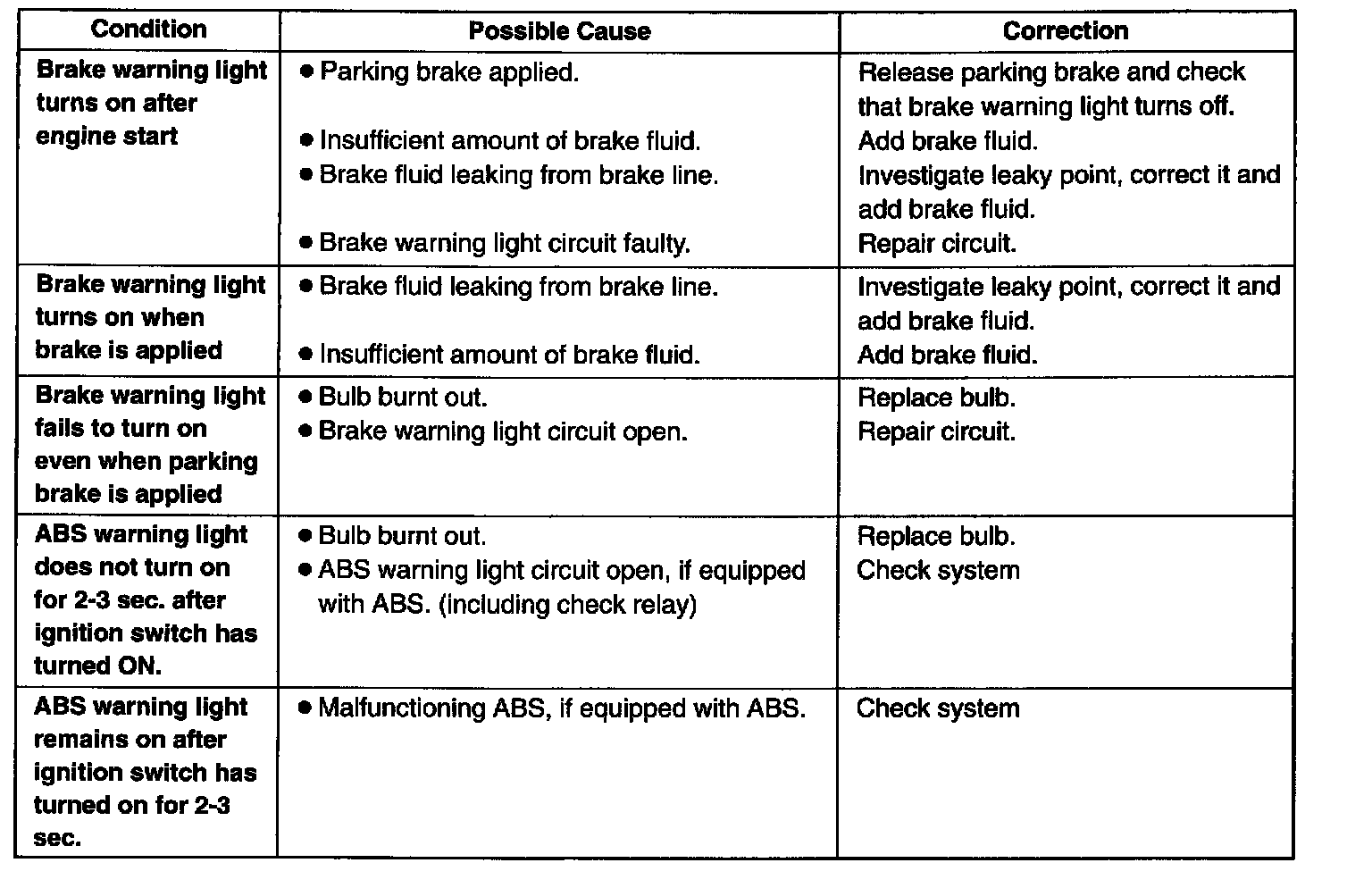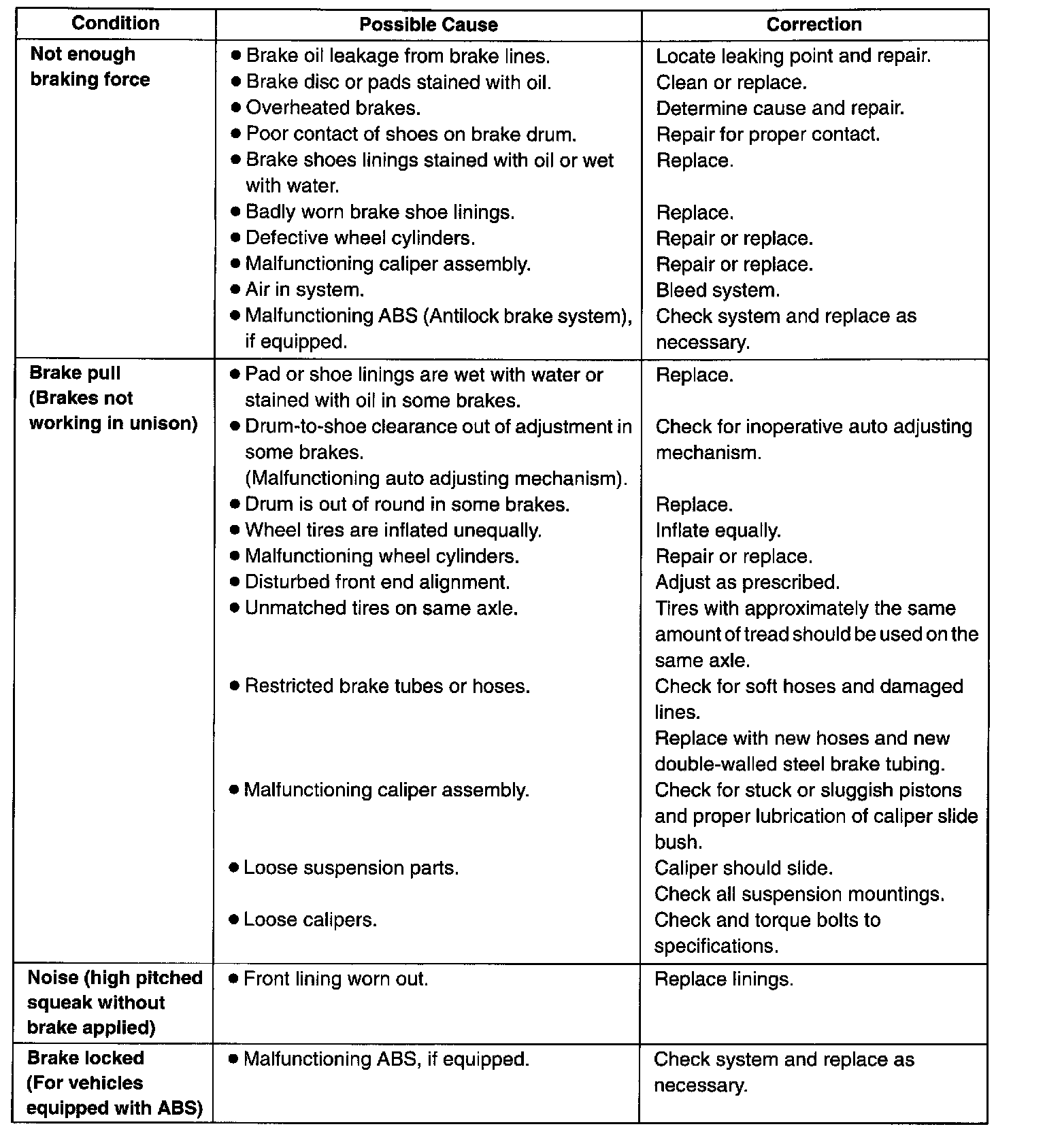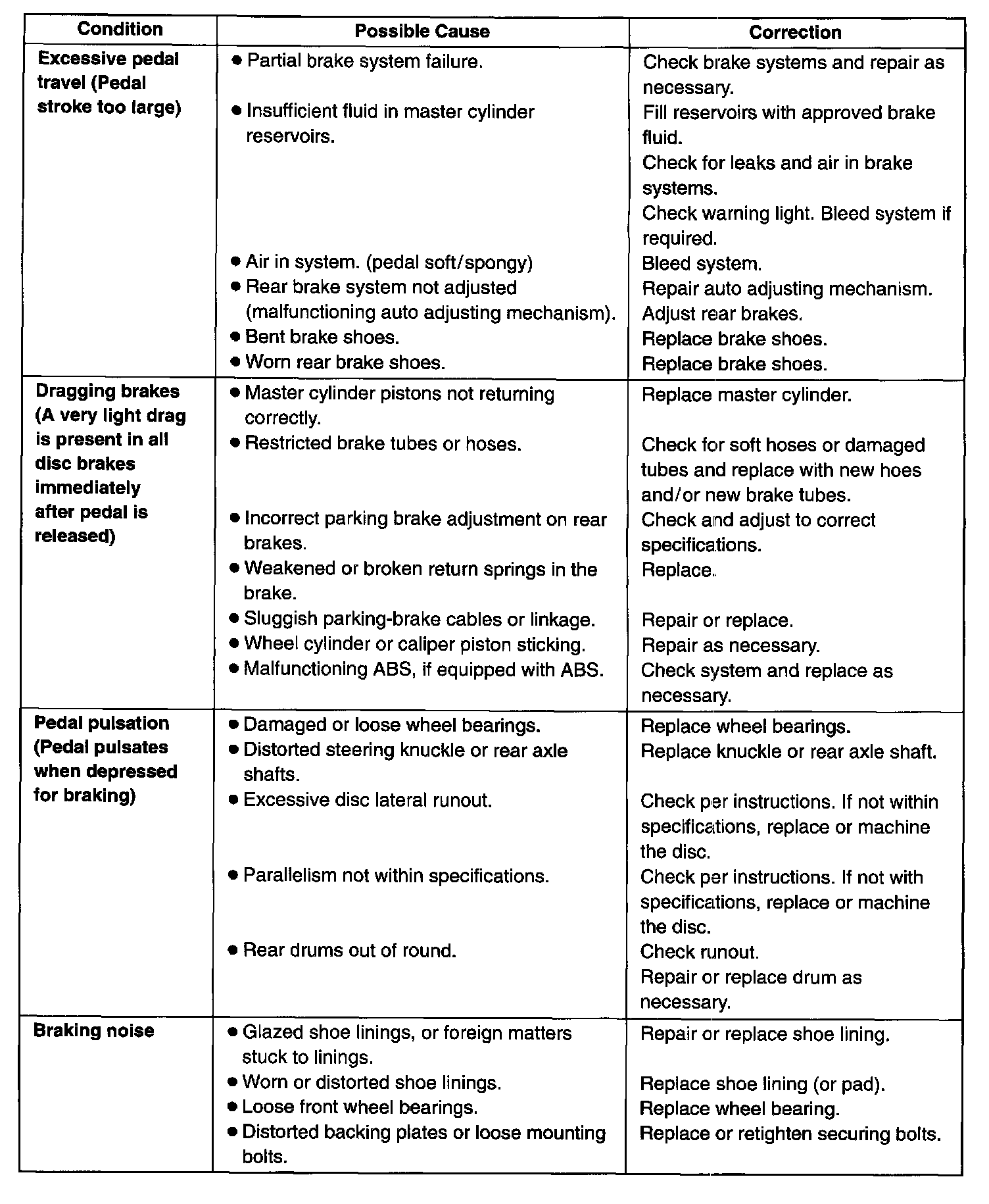 BRAKE DIAGNOSIS CHARTS