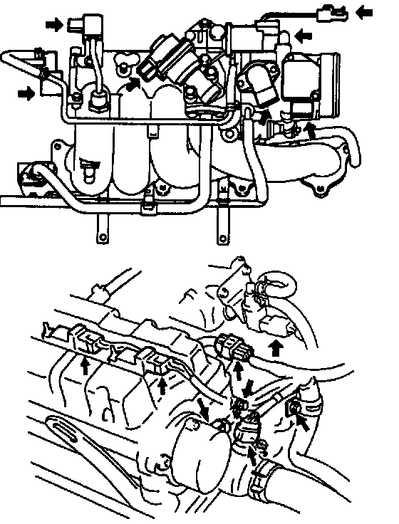 1. When servicing cylinder head, remove intake manifold, injectors, exhaust manifold and water outlet cap from cylinder head.