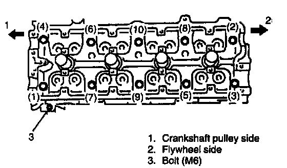 1. Tighten all bolts to 53 Nm (5.3 kg-m, 38.5 ft. lbs.) according to numerical order in figure.
