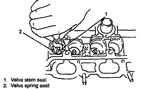 5. Remove valve stem seal from valve guide, and then valve spring seat.