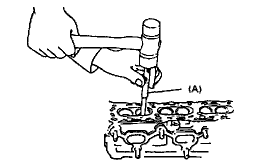 Heat cylinder head uniformly at a temperature of 80 to 100°C (176 to 212°F) so that head will not be distorted, and drive new valve guide into hole with special tools.