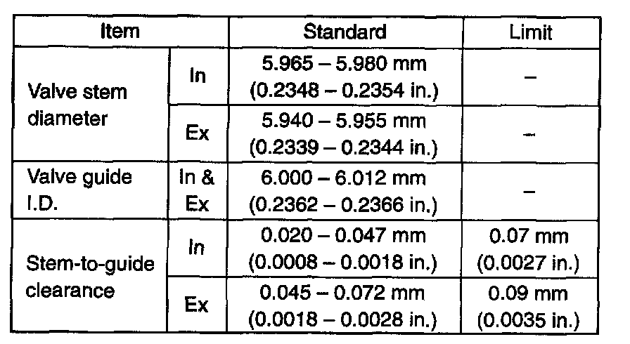 Limit on valve head radial runout: 0.08 mm (0.003 inch)