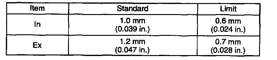 ^ Measure thickness of valve head. If measured thickness exceeds limit, replace valve.