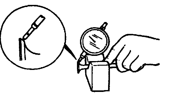^ Check each valve for radial runout with a dial gauge and "V" block. To check runout, rotate valve slowly. If runout exceeds its limit, replace valve.