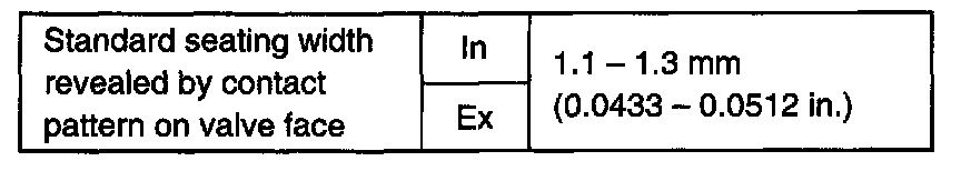 Seat width for intake valve seat: 1.1 - 1.3 mm (0.0433 - 0.0512 inch)