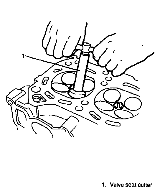 1. EXHAUST VALVE SEAT: Use valve seat cutters to make two cuts as illustrated in figure. Two cutters must be used: the first for making 15° angle, and the second for making 45° angle. The second cut must be made to produce desired seat width.