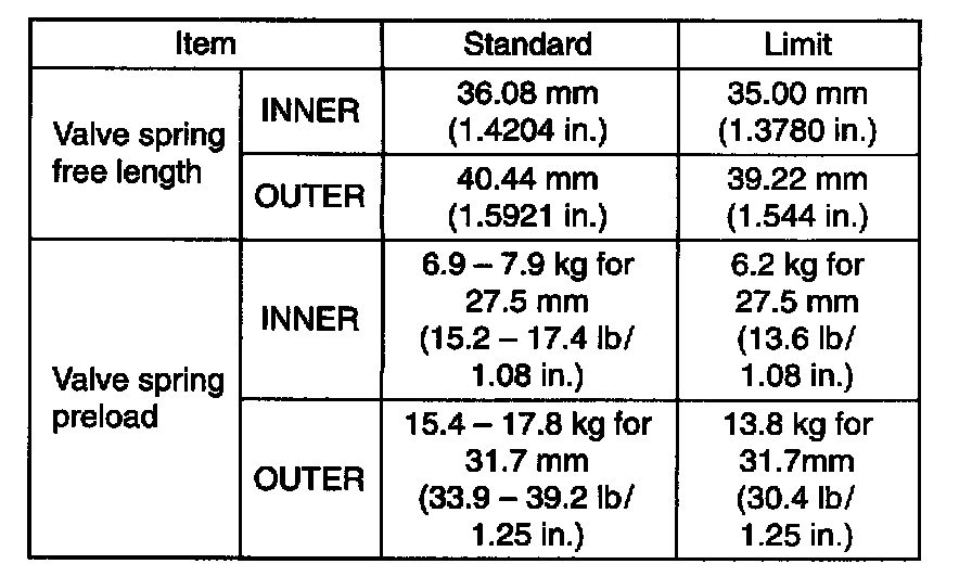 Valve spring squareness limit: 2.0 mm (0.079 inch)