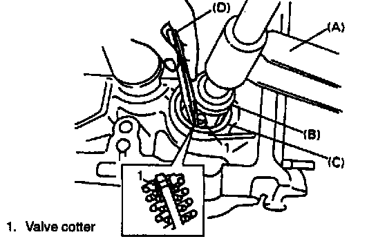 2. Using special tools, compress valve springs and then remove valve cotters also by using special tool.