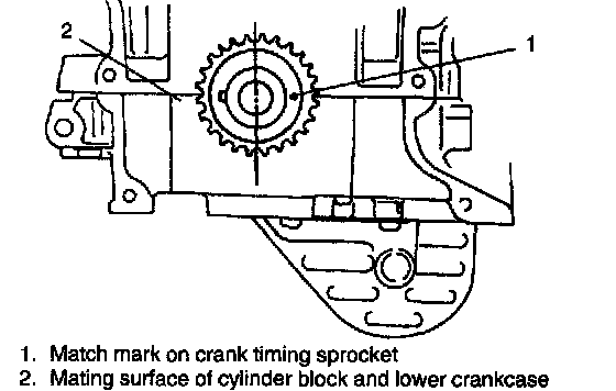 1. Match match mark on crank timing sprocket and mating surface of cylinder block and lower crankcase.