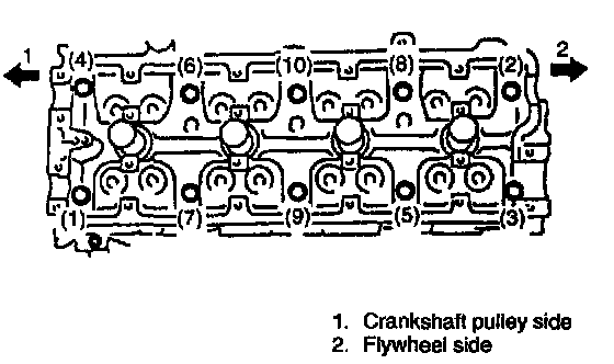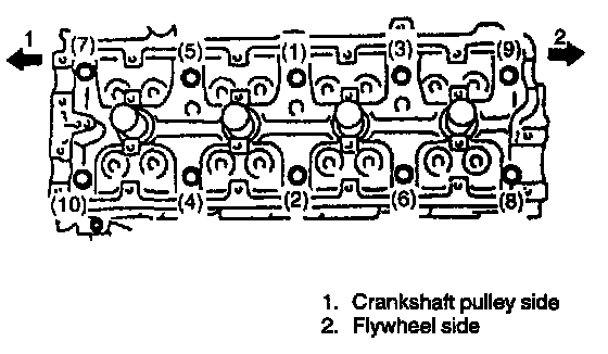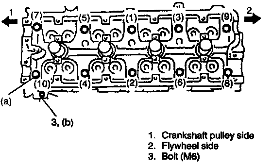 Loosen cylinder head bolts in such order as numbered in figure and remove them.