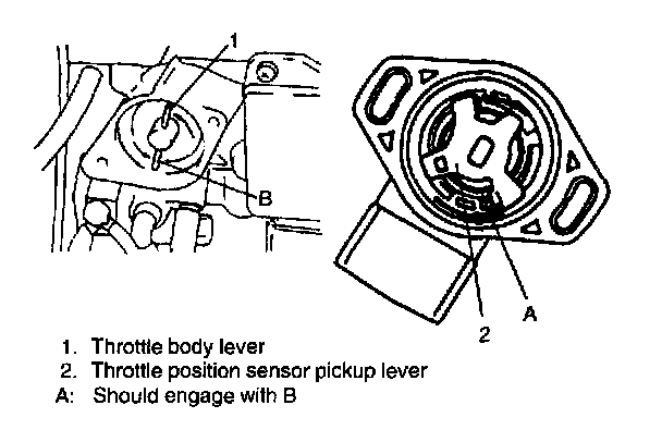 1. To install sensor, place it onto throttle body so that sensor pickup lever can engage with throttle body lever.
