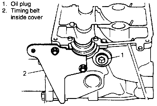 9. Install rocker arm shaft plug and timing belt inside cover. Then tighten rocker arm shaft plug to specified torque.