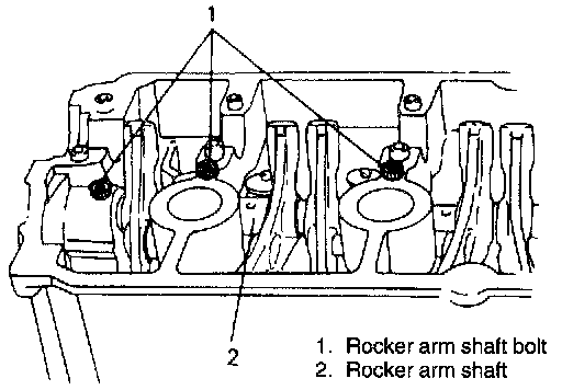 10. Remove rocker arm shaft bolts.