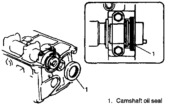 8. Install camshaft oil seal. After applying engine oil to oil seal lip, press-fit camshaft oil seal till oil seal surface becomes flush with housing surface.