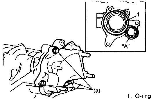 13. After applying sealant to part "A" as shown in figure at the left, install CMP sensor case to cylinder head and tighten its fixing bolts to specified torque.