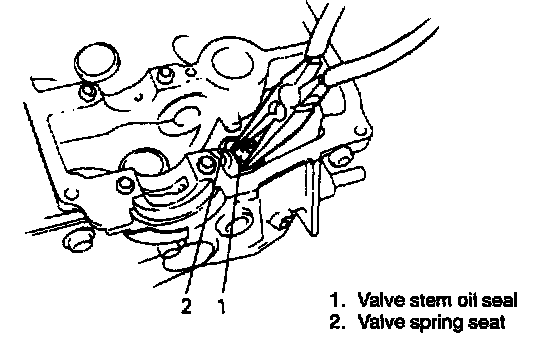 6. Remove valve stem oil seal from valve guide, and then valve spring seat.