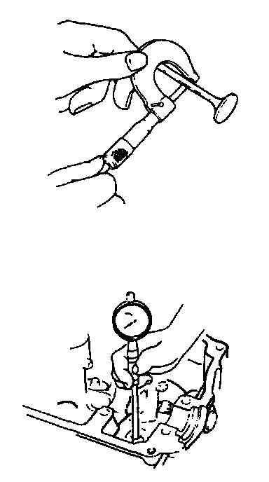 If bore gauge is not available, check end deflection of valve stem with a dial gauge instead.