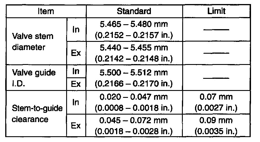 Valve guide protrusion (in and Ex): 11.5 mm (0.45 inch)