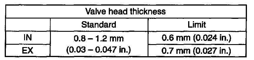 ^ Measure thickness of valve head. If measured thickness exceeds limit, replace valve.