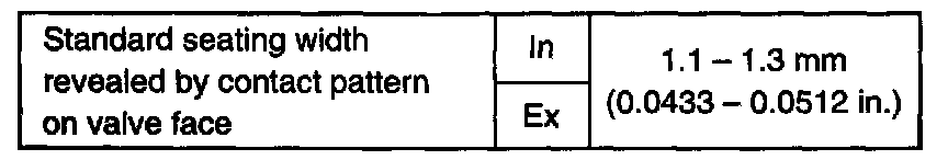 Seat width for intake valve seat: 1.1 - 1.3 mm (0.0433 - 0.0512 inch)