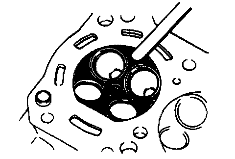 ^ Inspect each valve for wear, burn or distortion at its face and stem and, as necessary, replace it.