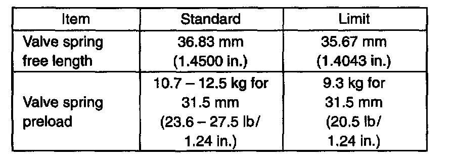 Valve spring squareness limit: 2.0 mm (0.079 inch)