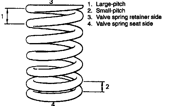 Each valve spring has top end (large-pitch end) and bottom end (small-pitch end). Be sure to position spring in place with its bottom end (small-pitch end) facing the bottom (valve spring seat side).