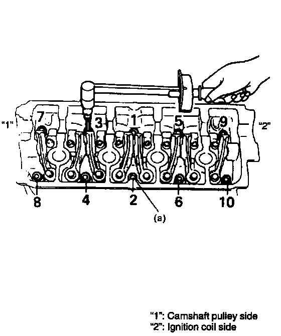 15. Loosen cylinder head bolts in such order as indicated in figure and remove them.