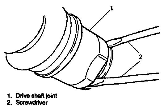 21. By using large size screwdriver; pull out drive shaft joints at differential side so as to release snap ring fitting.