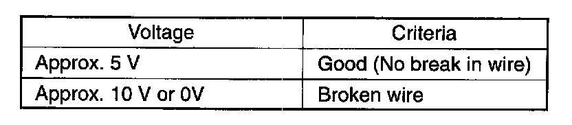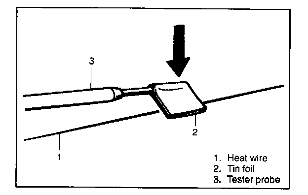 NOTE: If heat wire is free from damage, voltmeter should indicate 12 V at heat wire positive terminal end and its indication should decrease gradually toward zero at the other terminal(ground).
