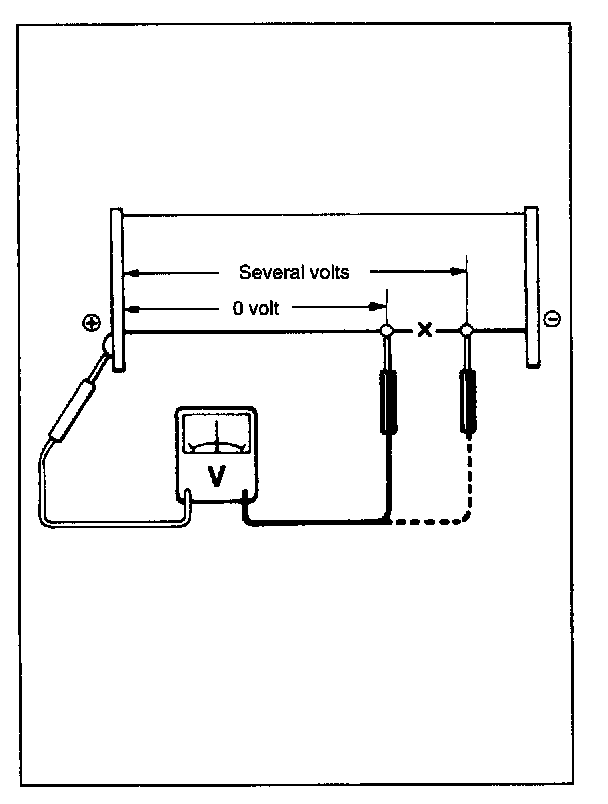 - When measuring wire voltage, use a tester with negative probe wrapped with a tin foil which should be held down on wire by finger pressure.