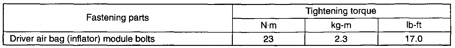 Tightening Torque Specifications: