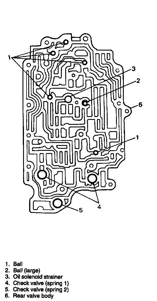 8. Place check balls, oil solenoid strainer, check valves and compression springs to rear valve body.