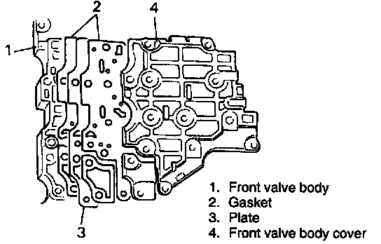 11. Remove front valve body cover, cover gaskets and plate by removing 4 bolts.