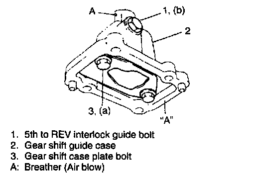 INSTALLATION1. If gear shift guide case has been disassembled or replaced, tighten bolts as specified below. Also check breather hole for clog.