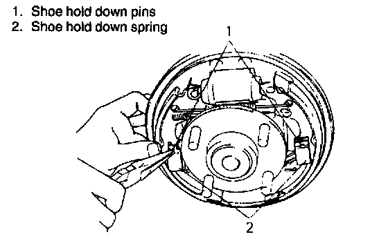 2. Remove shoe hold down springs by turning shoe hold down pins.