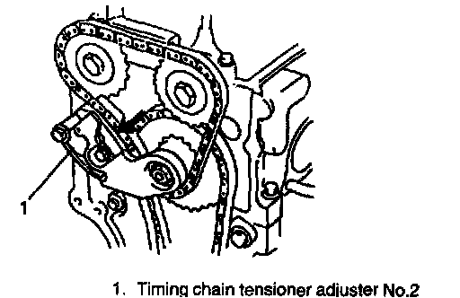 8. Install timing chain tensioner adjuster No.2 and gasket.