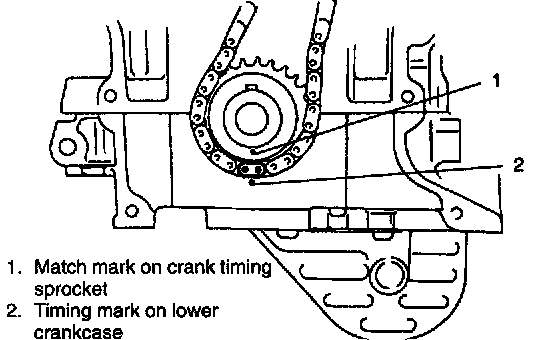 1. Check that match mark on crank timing sprocket is in match with timing mark on lower crankcase as shown in figure.
