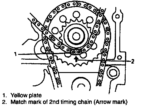 4. Install 2nd timing chain by aligning yellow plate of 2nd timing chain and match marks on idler sprocket.