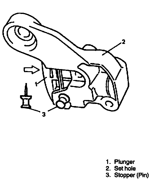 7. Push back plunger into tensioner body and hold it at the position by inserting stopper into body.